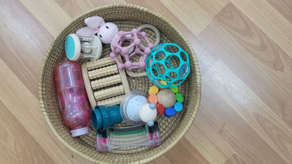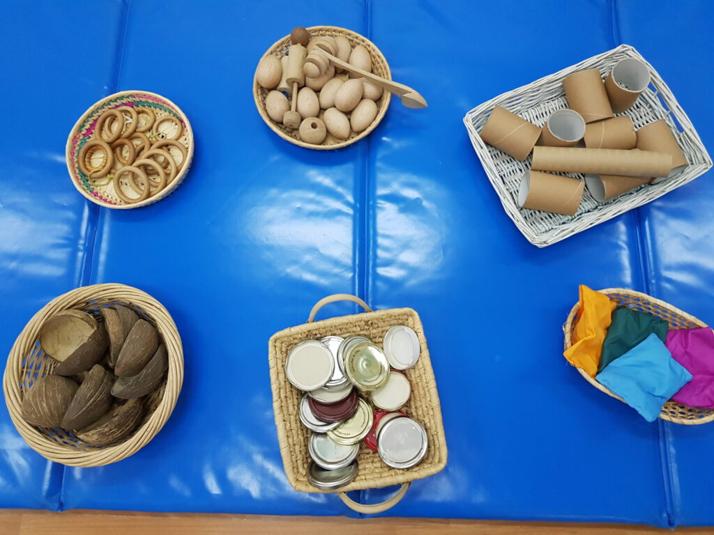 La panera dels tresors consisteix en oferir una panera als infants, la qual conté diferents tipus d’objectes de diferents materials que pretenen desenvolupar els sentits